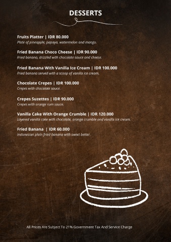 All Prices Are Subject To 21% Government Tax And Service Charge
